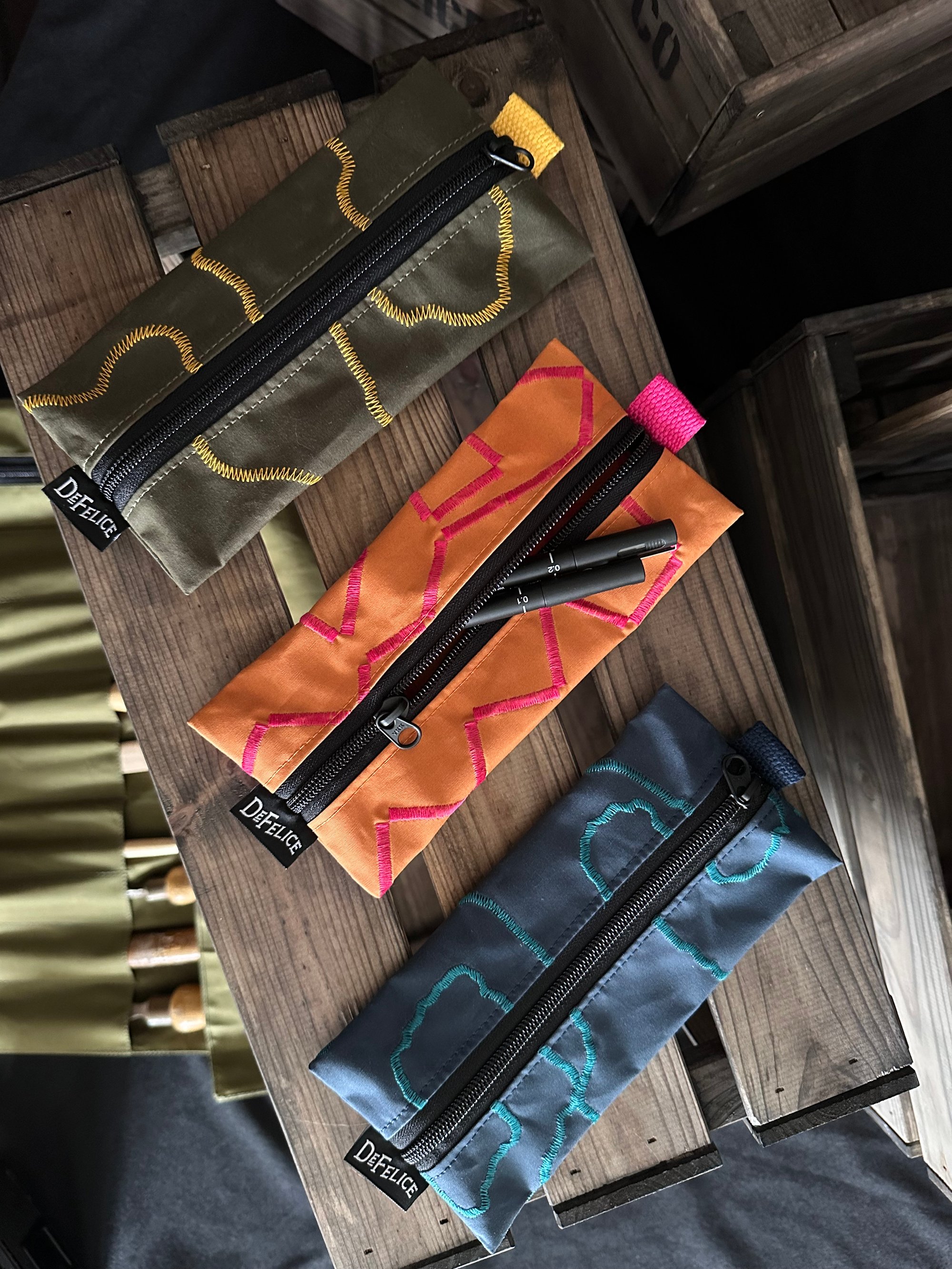 Our handmade pencil cases but with a little extra, limited edition individually decorated with 3 different designs. All are crafted from premium dry waxed canvas, are built to last and designed for everyday use. Perfect for storing pens, pencils, and art supplies, they also double as a stylish pouch for makeup, small tools, or travel essentials.
